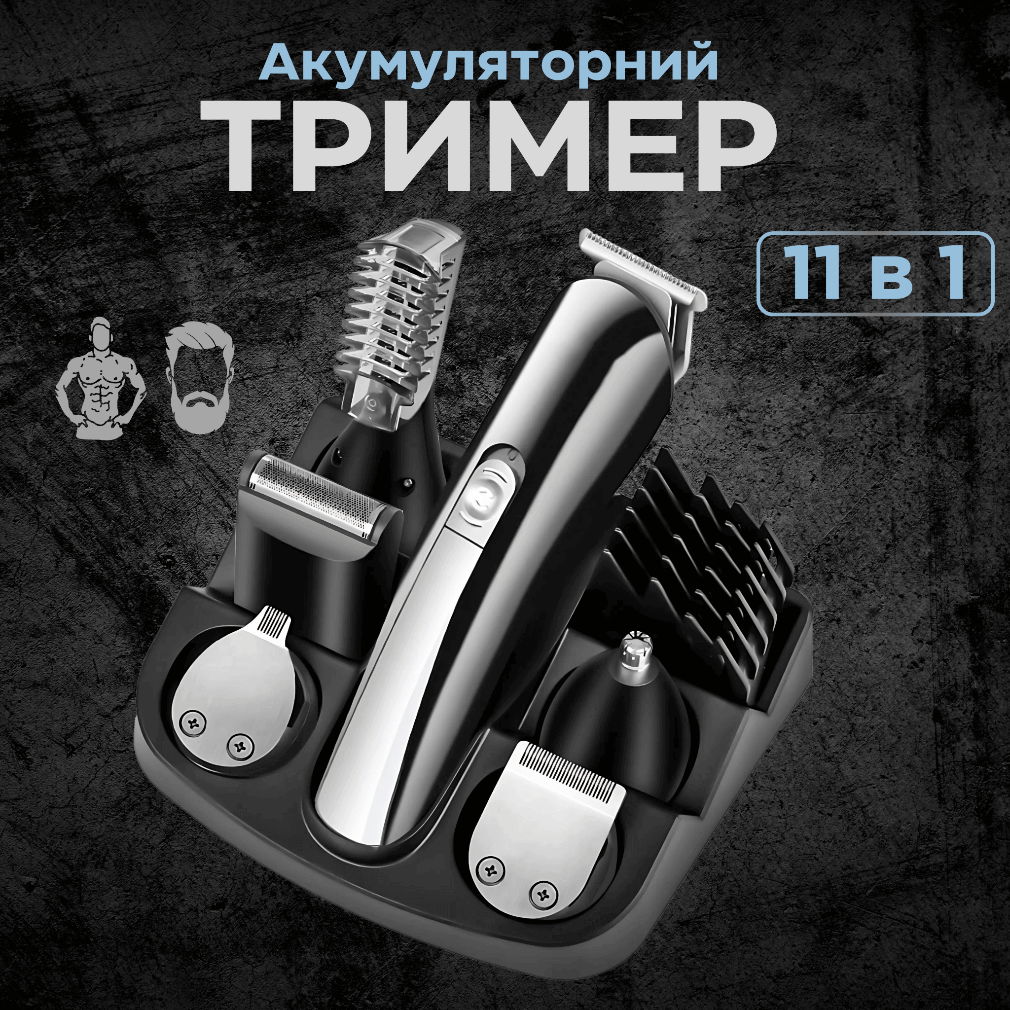 Набір для стрижки волосся , являє собою універсальну машинку для стрижки з 11 насадками. Дві насадки для стрижки ширини, насадки регулювання довжини 3-12 мм, тример для носа, дизайнерський тример, вузький тример, сіткова бритва, насадка 3-4,5 мм. Насадки з нержавіючої сталі, вбудований акумулятор і індикатор заряду. Відмінний набір на всі випадки життя, замість декількох приладів Вам достатньо мати один такий.